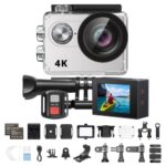 4K スポーツアクションカメラ手振れ防止、WiFi バイクヘルメットカメラ、HD ビデオ録画用 120 度広角、屋外用防水オートバイ DV ビデオカメラ (暗灰色) |