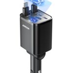 Kwak’s カーチャージャー シガーソケット 車載充電器 4in1 Type-C 100W/Lightning 20W 急速充電 高速車の充電器 巻取り式 ケーブル 対応iPhone 15/14/13/12, Galaxy S22/S21 Ultra, iPad, LED付オート電圧測定 スマート識別(Type C+Type C) |
