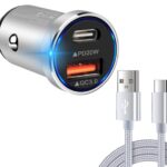 シガーソケット USB-C 2ポート 30W + 1.2m 60W Type-C ケーブル PD&QC3.0対応/USB-A&USB-C/12V-24V Hootek カーチャージャー タイプC 車 充電器 シガーソケット PD コイルケーブル 伸びる シガレット充電器 iPhone 17/16、Galaxy S26、iPad Pro(2025)、Android/IQOS対応(シルバー) |
