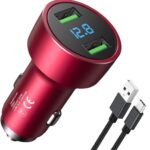 車載充電器 カーチャージャー PSE認証 4.8A 2USBポート USB Type-Cケーブル付き 電圧計 12V/24V車対応 スマホ急速充電 iPhone iPad Samsung Galaxyなと対応 (レッド)