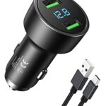車載充電器 カーチャージャー PSE認証 4.8A 2USBポート USB Type-C ケーブル付き 電圧計 12V/24V車対応 スマホ急速充電 iPhone iPad Samsung Galaxyなと対応 (ブラック)