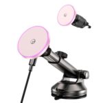 GuMosh MagSafeカーマウントチャージャーダッシュ/フロントガラス/ベントワイヤレスカーチャージャー[LEDライト]付き磁気携帯電話ホルダー iPhone 17 16 15 14 13 12シリーズ用 MagSafeアクセサリーに適合 (ピンク) |