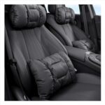 xcbawzy 車用品 ヘッドレスト 背もたれクッション 車用快適サポートセット 3D立体裁断・多ゾーンサポート 通気性 運転中の腰と首の疲れを軽減 長時間ドライブも楽々 洗練されたデザインで車内の快適性を向上【プレミアムブラック】1組) |