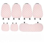 車用 シートカバーセット シートクッション 座布団クッション 運転席 助手席 後部座席 カー用品 格子縞 ウール地 防寒 厚手 暖かい 滑り止め 車アクセサリー (ピンク, 角型カーシート2枚後部座席カーシート 1枚背もたれ4枚7枚組) |
