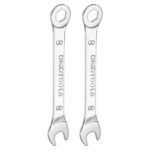 uxcell 2個 コンビネーションスパナ ラチェットレンチ 薄型スパナ メトリック 8mm CR-Vクロームメッキスチール製 6ポイ ント エンド ボックス 15度オフセット オープン エンド シルバー |