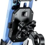 Kaedear(カエディア) バイク スマホホルダー バイク用スマホホルダー 携帯ホルダー 振動吸収 マウント 対応 スマホ スタンド アルミ製 マウント ハンドル ミラー 原付 オートバイ 自転車 / スマホ厚さ15mmまで, 縦長スマホ, カメラ突き出し,対応/アームロック機構, クイックホールドⅡ KDR-M11CP-BK |