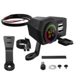 Palumma オートバイ電源 USB充電器 3.4A 安全 チャージャー QC3.0 急速充電 電圧計 温度計 防水 過圧保護 LEDデジタル ソケッ オートバイのハンドルやサイドミラーに取り付け可能 (デュアルUSBポート) |