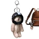 [Nuytghr] Bear Charm – ヘルメット付き ベア ぬいぐるみ キーホルダー,おしゃれな 動物 キーホルダー 女性 向け 旅行 用 バックパック 財布 ウォレット ホーム デコレーション 用 |