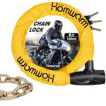 Homwarm バイクロック チェーンロック 頑丈 盗難防止 鍵3本付き 極太 長さ1600mm チェーンパイプ直径8mm 多用途 自転車 バイク ワイヤーロック 防錆 (イエロー, 160cm) |
