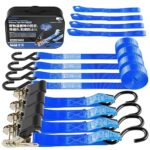 AWELCRAFT ラチェット式タイダウンベルト 破断荷重700kg GS認証取得済み 4本セット 長さ2M 荷締めベルト 幅25mm ラッシングベルト 荷締機 固定ベルト 固定バンド 締付固定 多用途 引越し 運搬用 ブルー |