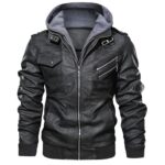 [Luvian] レザージャケット メンズ ライダースジャケット 革ジャン バイク 大きいサイズ カジュアル スタンドカラー フード付きレザーアウター 無地 撥水防風 防寒 おしゃれ かっこいい ブルゾン 通勤 通学 春秋冬服 leather jacket |