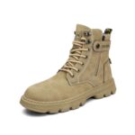 [ZKGK] ブーツ メンズ ショートブーツ 防水 バイク靴 ライディングブーツ 厚底 サイドジップ ライダーブーツ ハイカット 革 幅広 冬用 オートバイシューズ エンジニアブーツ アウトドア おしゃれ 人気 防風 滑らない バイクブーツ (カーキ, 26.0 cm) |