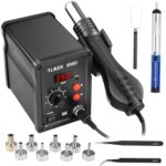 TLBZKリワークハンダ付けステーション、2 in 1 SMD ホットエアハンダステーションとハンダ付けアイロンキットヒートガン、ハンダ付け先、ホットエアノズル、ピンセット付き |