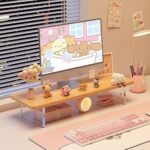パソコン モニター台 卓上 コンパクト モニターデスク ロータイプ 人間工学デザイン 姿勢改善 モニタースタンド 木製 耐荷重30kg パソコンラック 省スペース キーボード収納 卓上 収納 PCラック プリンタ台 木製天板 アクリル製脚 組立簡単 整理整頓 (40×20×8.5cm,木の色) |