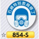 安全・サイン8 ヘルメット用ステッカー 表示内容:854-S石綿特別教育修了 |
