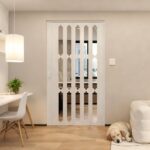 Pounjsd アコーディオンドア 屋外 幅65×高さ180cm ホワイトウッドPVCコンサーティーナドア屏门 室内ドア 折りたたみ スライドドア ハンドル付きマグネット式コンチェルティーナドア 間仕切りゲート 引き戸 塩化ビニール 出入り口、パントリー、リビングルーム、ベッドルーム、キッチン、地下室、アパートなどに使用できます |