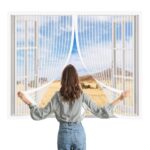 グラスファイバー素材 片開き 網戸 86 x 105 cm 網戸マグネット式自動で閉まる簡単取り付け木製・鉄製・アルミなどの窓枠に対応可能, ホワイト |