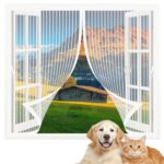 網戸 窓用網戸 窓カーテン蚊帳 83 x 75 cm 玄関マグネット式ドアカーテン,玄関防虫ネットマジクプ付き,多サイズ調節可能適用任意のサイズりドア/ベラダ, ホワイト |