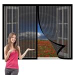 網戸 玄関 窓用 196 x 195 cm 磁気フライスクリーン蚊帳自動で閉まるカーテン簡単取り付け適用ベッドルム、キッチ, ブラック |