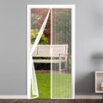 網戸 玄関 ドア用マグネット式 90 x 180 cm 間仕切りカーテン断熱出入り楽々自動で閉まる簡単取付け防虫網戸カーテンアパトベラダサッシド勝手口開きに適用, ホワイト |
