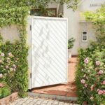 HSHBGS カフェドアーズ 無垢材 スイングドア 片 開き シングル 扉 テラスパーティション フェンスゲート 金属製ヒンジ ルーバー半腰扉 安定性と耐久性 浴室の塀のゲート 屋外 庭 廊下 キッチン戸口バーカの装飾(ホワイト~斜め縞,幅60x高さ120cm) |