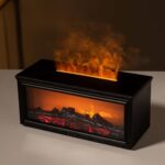 JuneSunミニコンロ型アロマディフューザー、暖炉デザイン、エッセンシャルオイル対応、炎パターン、超音波加湿器、3段階ファン速度調節可能、タイマー機能、自動電源オフ、空焚き防止、大容量、Type-C電源、お手入れ簡単、乾燥防止 (ブラック) |