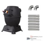 NYHGOXM 鋳物製薪ストーブ 大型ポータブル暖炉 室内調理器 キャンプ用ストーブ 煙突・やかん付き 組み立て簡単 黒耐熱塗装 (ブラック,大型鋳鉄炉+ステンレス製煙突付属品) |