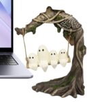 Penlimly Ghost Swinging on Tree – 木の上の幽霊の置物、樹脂製の置物 かわいいセンターピース ホームパーティー マントル テーブル ポーチ お化け暖炉 ハロウィン |