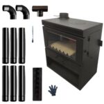 TVT 薪ストーブ 小型 室内 屋外用薪ストーブ ダブルオーブン やけど防止スクリーンとアクセサリー付き 調理 高熱効率 リビングルーム 寝室 暖房用 薪ストーブ キャンプ (シングル暖炉 + 3メートルの黒いステンレス製煙突) |