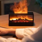 ViSSKO 加湿器 小型 卓上 アロマ 150ml 炎 超音波 アロマ対応 LEDライト7色 卓上加湿器 自動停止機能 卓上噴水 排水 空焚き防止 コンパクト お手入れ簡単 デスク 部屋 会社 リビング 乾燥/花粉症対策-ブラック |