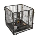 ストーブガード 50×50×50cm ドア付 4枚パネル|室内外対応フェンス柵・暖炉/薪ストーブ/ファンヒーター用|耐熱スチール角パイプ・吸盤固定・自由連結・自立式|ベビー/ペットのやけど対策 ブラック |