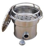 厚手の暖炉 卓上練炭コンロ – 軽量コンパクト設計のステンレス製BBQコンロ 網付き 無煙バーベキュー グリル 浅底 均一加熱 屋内屋外対応 キャンプ アウトドオアに最適 (炭ストーブ+炭クリップ+鍋フレーム) |