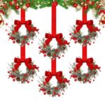 小さなクリスマスリース、ダークブラウンリボンリボン付きミニクリスマスリース1個、3×3インチの吊り下げガーランド 人工小型キッチンリース、窓の暖炉、玄関、屋内、屋外の装飾に。 |