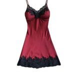 [Babsully] ガーター ストッキング 網 タイツ セット 穴あき サスペンダー 黒 セクシー レディース サテン シルク ハーフスリップ レース ベビードール セクシーランジェリー ナイトドレス ネクリジェ ナイトウェア キャミソール 人気 セクシー ベビードール 深Vネック 滑らか ワンピース ルームウェア (M/レッド) | 高価買取中 |