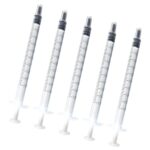 5セット ガラスシリンジ 1ml 注射器 注射筒 耐熱シリンジ ルアーペットシリンジ ルアーロックと鈍い先端 再利用可能 産業用 工業用 研究室 ペット用 – ゴールド |