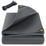 防水シート超厚手, 屋外 ターポリン 雨よけシート, PVC製, 0.55mm厚, 550g/㎡, 両面防水, 難燃性, 耐寒性, 屋外 屋根 庭 バルコニー 防塵 防風 保護ロープ付き (2X3M,グレー) |