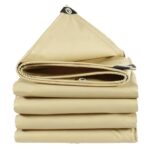 防水シート超厚手, 屋外 ターポリン 雨よけシート, PVC製, 0.55mm厚, 550g/㎡, 両面防水, 難燃性, 耐寒性, 屋外 屋根 庭 バルコニー 防塵 防風 保護ロープ付き (2X3M,ベージュ) |