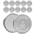 EEMB LIR2032 充電式バッテリー 3.7V リチウムイオンコインボタン電池 45mAh 車のリモートキーフォブウォッチ用(10セット) |