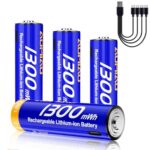 【新型】単四電池 充電式 リチウム 充電電池 1.5V 定出力 4本セット 単四 充電池 大容量 1300mWh/860mAh 約1600回循環使用可能 環境保護 単4形 リチウムイオン 急速充電 保護回路付き TYPE-C充電ケーブル付き |