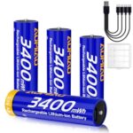 AOMIAO 単三電池 充電式 4個セット 1.5V リチウム充電池 高容量 2200mAh/3400mWh 約2000回以上使用可能 単3形 急速充電 TYPE-C充電ケーブル付き 環境にやさしい(単3電池 充電式 4本セット) |