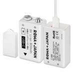 ロワジャパン【USB Type-C】9V 充電池 2本入 800mAh 006P型 6F22 角形 充電式 電池 リチウムイオン 電池ケース付き 二股USBケーブル |