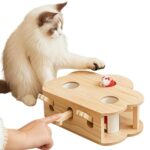 猫ひとり遊びおもちゃ 木製おもちゃ 押すとおやつが出てくる自動猫おもちゃ 丸い穴付き爪跡付き拨片付き ぬいぐるみネズミ付き もぐらたたきゲーム対応 子猫向け高齢猫向け元野良猫チャチャ 知育機能付き猫用おもちゃ |