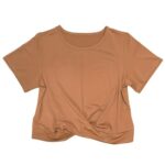 [piena] ヨガウェア トップス レディース スポーツウェア 半袖 前ねじり フロントクロス 薄手 軽量 運動 (ブラウン/XL) |