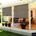 TANG エクステリア ローラーシェード ロールアップ アウトドア シェード ブラインド パティオ デッキ ポーチ パーゴラ バルコニー 裏庭 ライトフィルター ホローアウト ストライプ ブラウン 幅5フィート x 長さ6フィート |