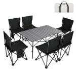 BEIKEMALL アウトドア テーブル チェア セット キャンプ テーブル57cm×95cm×50cm ピクニックテーブル 超軽量 折り畳み 組立簡単 収納バッグ付き BBQ お釣り ガーデン キャンプ用品(ブラック, 7点セット) |