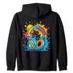 カラフルなペイントスプラッシュ付きヘッドホンイラスト ジップパーカー |
