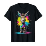 カラフルなロバのイラスト – ペイントスプラッシュ付き Tシャツ |