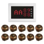 FLYDOG 呼び出しベル ワイヤレス 業務用 防水ボタン 呼び出し 呼鈴 ワイヤレス チャイム 10段階音量調整 4番号同時表示 日本語放送 飲食店 家庭用 病院 受信機と子機 セット (本体+子機10台+リモコン) |