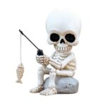 FUKUYOIZU スカルオブジェ 骸骨 釣り 置物 ゴシックインテリア ガーデンオーナメント 玄関 (ブラック) |