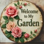 2D平面ブリキ看板(ローズガーデン ウェルカムボード 薔薇雑貨)インテリアボード |
